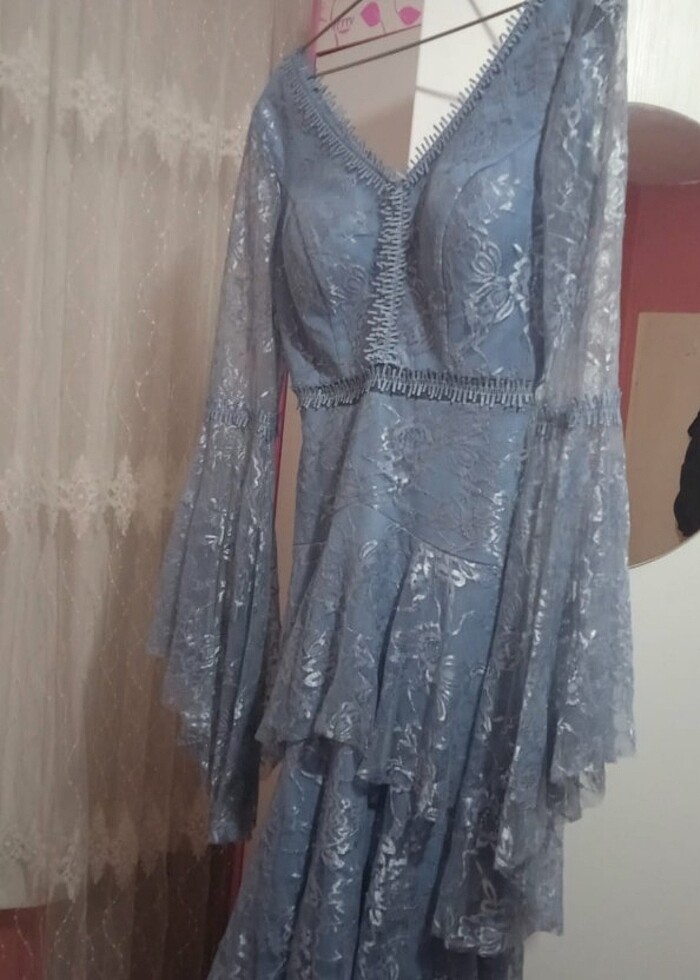 Abiye elbise diz üstü 40 beden çok iyi durumda mezuniyetim için almıştım bir kere giydim 40 bedendir
