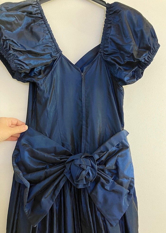 Lacivert tafta kumaştan özel dikim abiye elbisedir. Mezuniyette giyilmişti. Parmaksız eldiveni de var. 162 boy 52 kiloda giyildi. Bir yerinde dikişinde açıklık var, ilgilenirseniz diktirebilirim. #abiyeelbise #nişanelbisesi #kostüm #düğünelbisesi #geceelbisesi