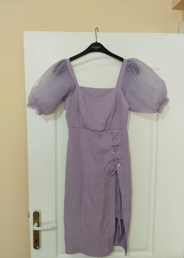Bir kez giyildi. Kollarındaki tül kısmını yaptırdım terzide. 34 bedendir.