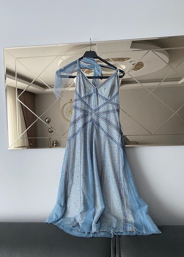 Taşlı abiye çok şık 1 kez kullanıldı astarlı. Sırt dekolteli. Diz boyunda. Boyundan bağlamalı. Göğüs pedli. Her yerde giyebilirsiniz. Prenses gibi hissediyorsunuz. Nişan mezuniyet kına düğün