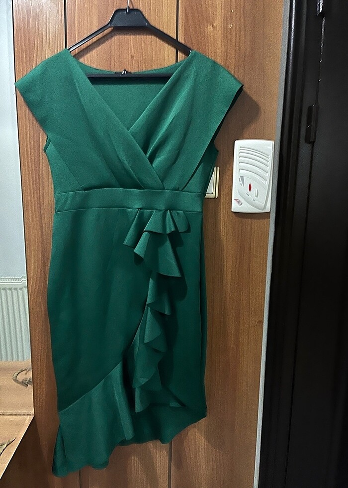 zümrüt rengi asimetrik kesim elbise