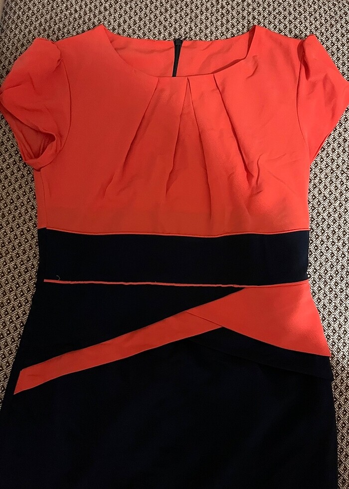 Kısa kollu narçiçeği ve lacivertin uyumuyla midi boy elbise