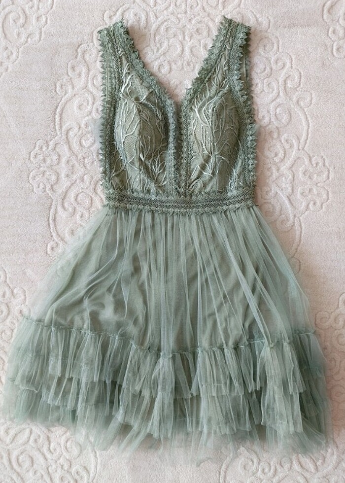 Mint yeşili abiye elbise. Sadece bir defa girilmiştir.