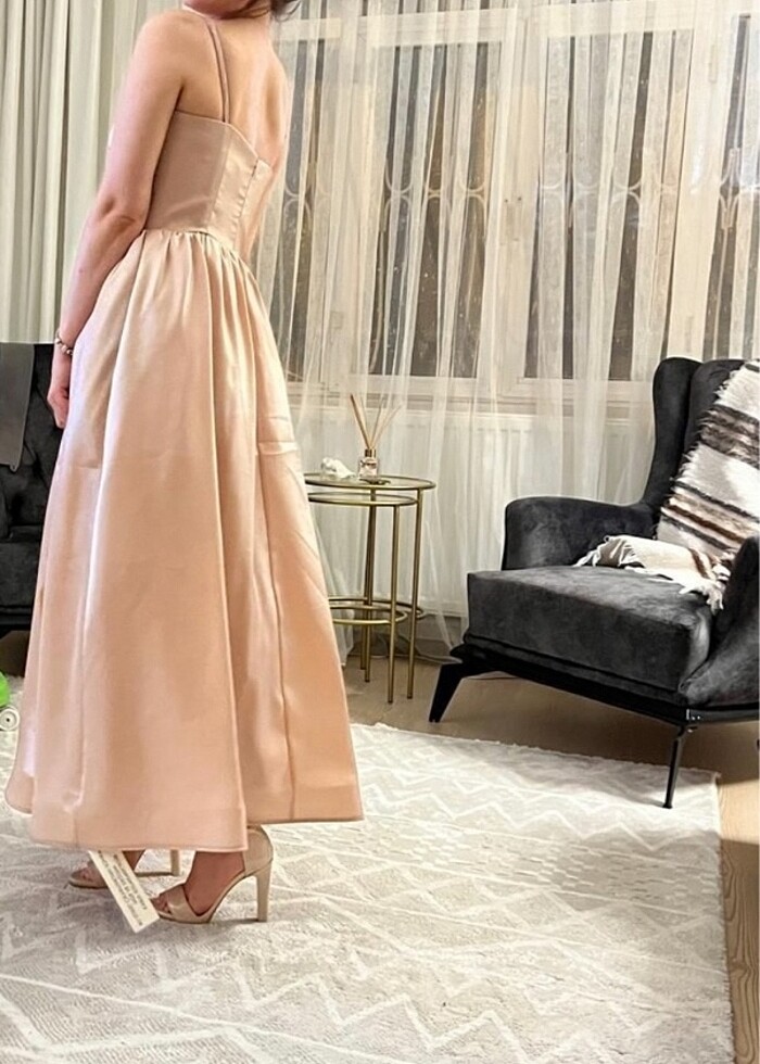 Ürün bir kere giyildi. Herhangi bir Deformesi yoktur. Temiz kullanıldı. Bedeni small. Nişan elbisesi olarakta kullanılır.