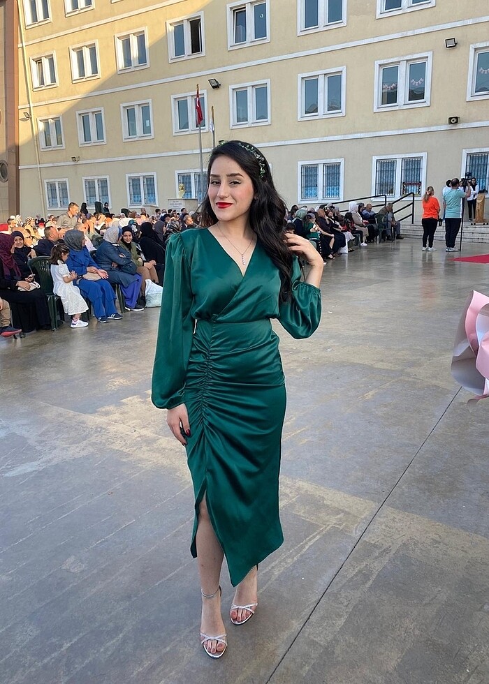 Yırtmaçlı balon kol saten kumaş iki kere giyildi tertemiz