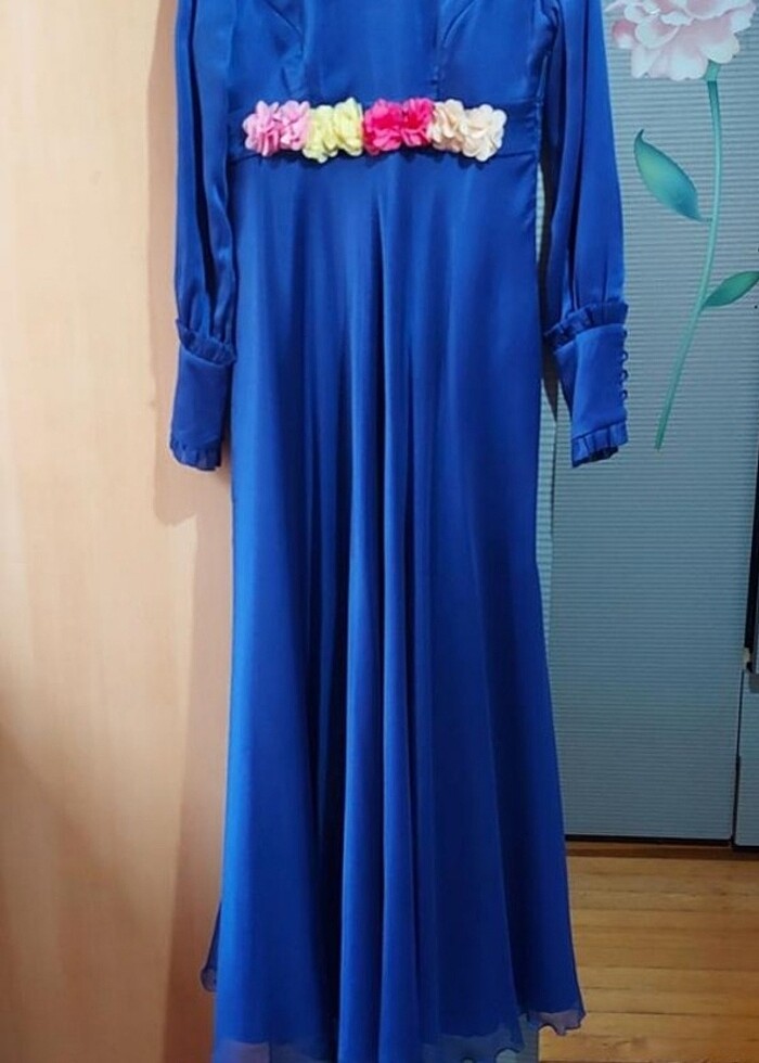 abiye elbise.sadece 1 kere nişanda giyildi.kumaşı saten üstü şifon kumaştır.çiçeler çıkabilir.özel dikimdir.