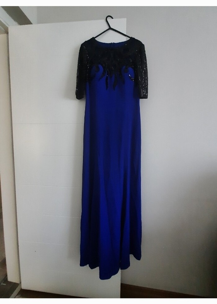 Saks mavisi abiye elbisedir. Bedeni 44. Bursa kapalıçarşıdan alınmıştır. 2 kere giyilmiştir.