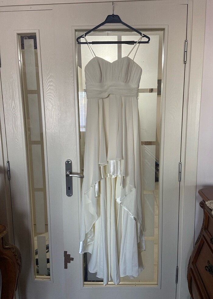Önü kısa arkası uzun abiye elbise 3 beden 38 -40 beden gibi düşünebilirsiniz 1 kez lise mezuniyetinde giyildi