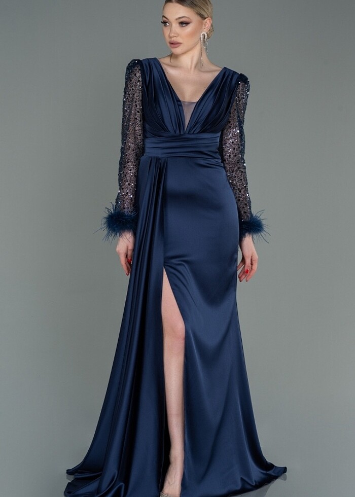 L beden lacivert yırtmajı bileğe kadar kapalı