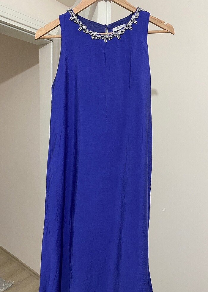 1 kez kullanıldı, çok hafif bir kumaşı var, astarlı, 2 yandan küçük yırtmaçlı ve gizli cepli hem günlük hem de özel günlerde kullanıma uygun çok güzel ferah yazlık bir elbise. Rengi mavi mor arası bir renk