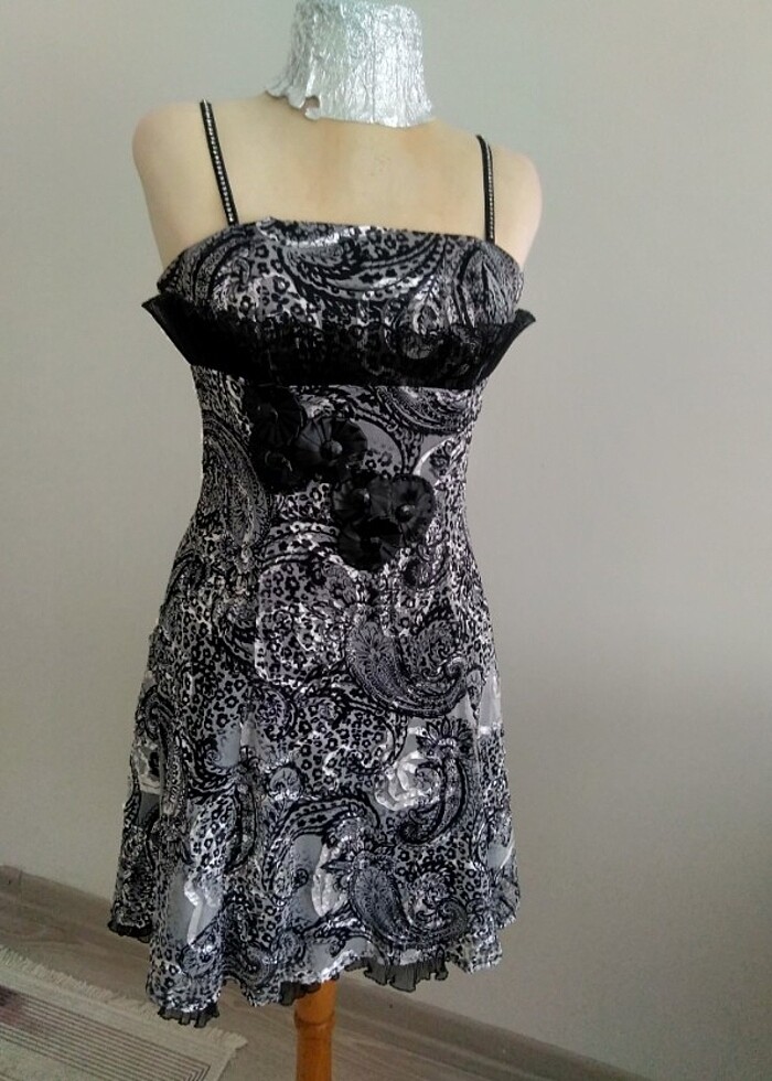 Normal boy tül desenli abiye önü kısa arkasi uzun bayan elbise