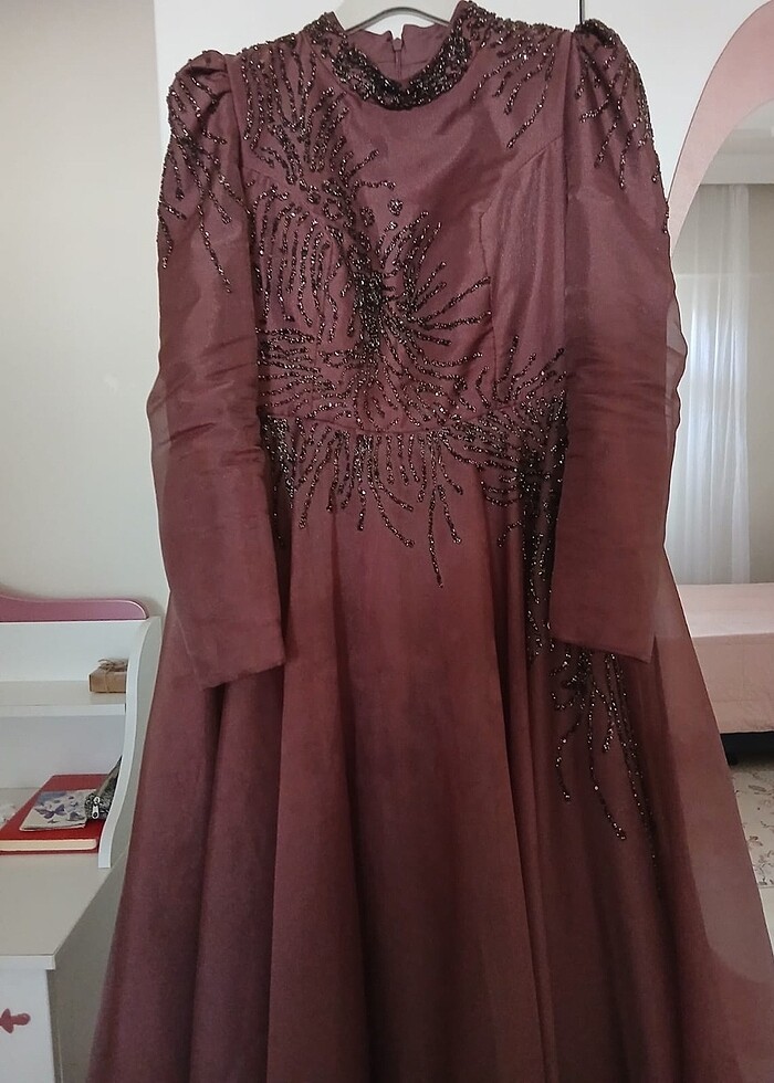 Ürünü yeni aldım 1 kez düğünde giydim 44 beden şal dahil aynı renk