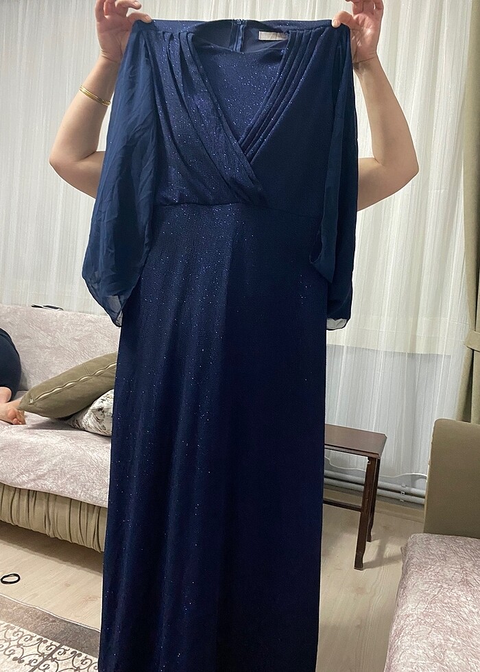 48 bedendir kumaşı kendinden simli sadece 1 kere giyildi kol detayları var