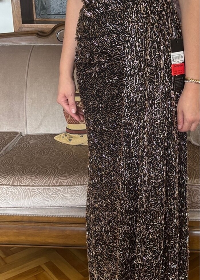 Sadece 1 kez giyildi çok temiz 40 beden ama kalıbı çok dar. Normalde 36 beden giyiyorum ancak oldu. 173 cm boy 60 kg ile giyildi. 10 cm topuklu ile kullanıldı.