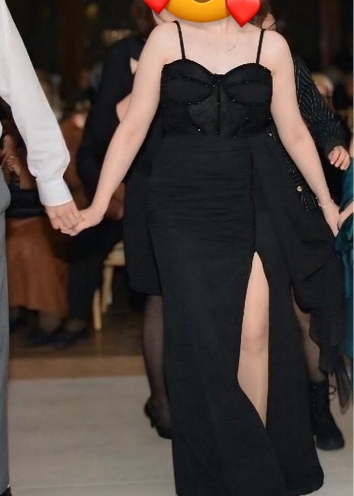 SADECE 1 KERE GİYİLDİ. KURU TEMİZLEME YAPILMIŞTIR. 40 BEDENE UYUMLU. YIRTMAÇ VE TAŞ DETAYLI. SIRTI İP BAĞLAMALI. İSTEYENE CANLI GÖRSEL ATILIR