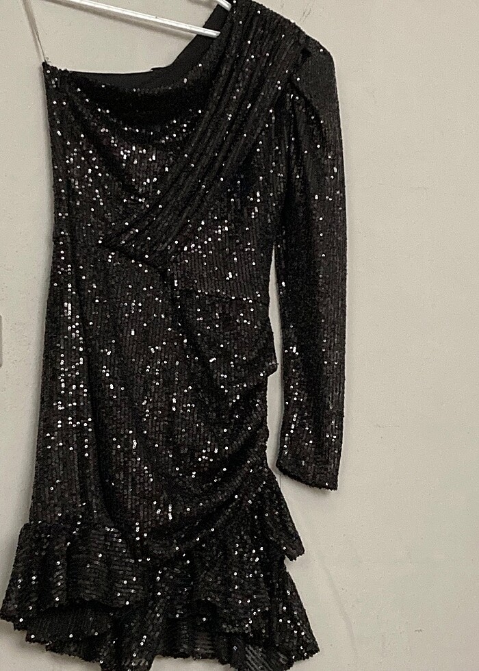 aldım bir kere giydim temiz payetli siyah tek kol kısa çok rahat bir kumaşı var hiçbir kusuru yok