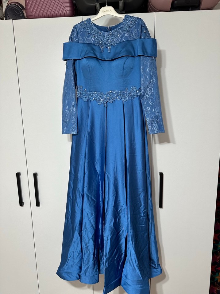 Kendi nişanımda bir kez kullandım. Şalı ile birlikte verilecektir. Bedeni 42 olarak seçtim ama üzerinde 3 yazıyor.