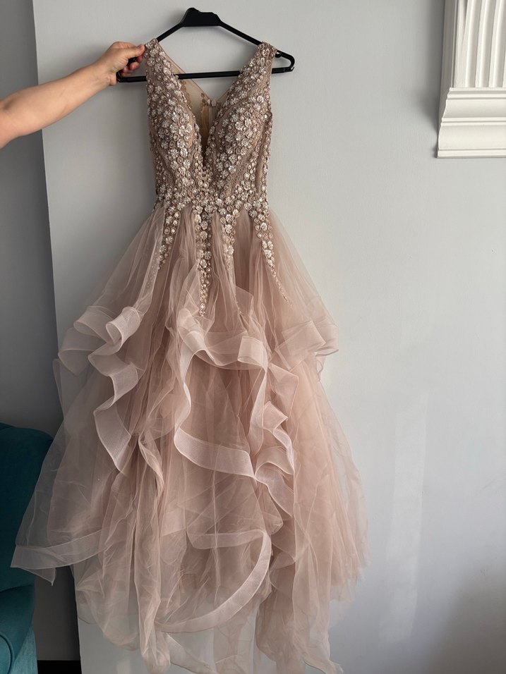 Ürün sadece 1 kere giyilmiştir pudra pembesi rengi tasarım elbise. Uç kısımları kesildiği için tadilat gerekli