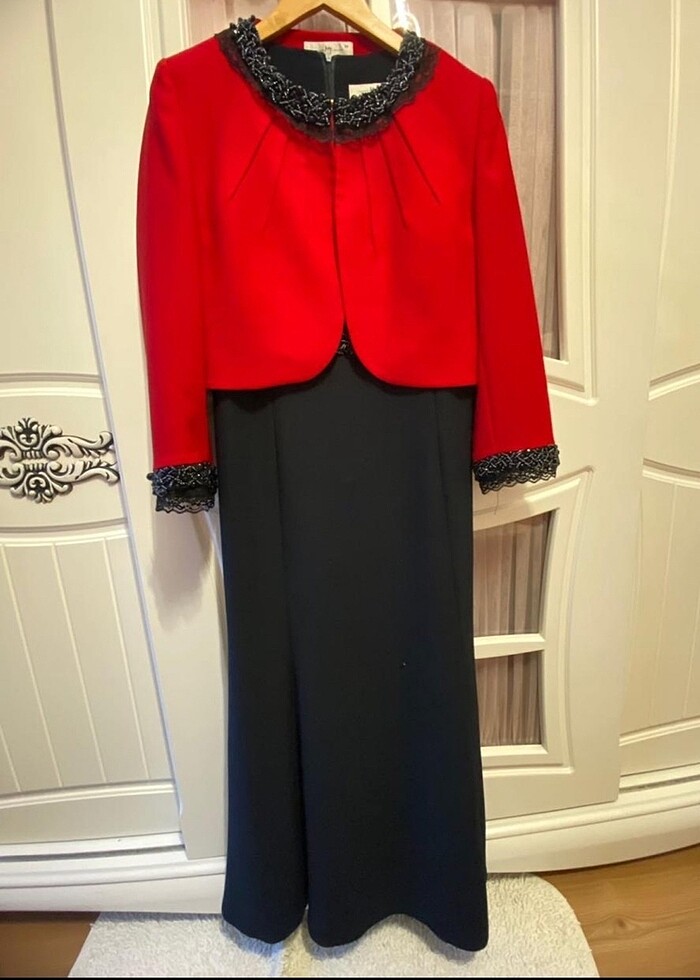 Ürün sadece bir defa giyildi özel bir gün için alınmıştı hiçbir deformasyonu yoktur. 44 bedene uyumludur elbise omuzdan eteğe boyu 1.34 tür. çok şık astarlı kırmızı ceketi , dantel detaylı kırmızı siyah abiye elbise takımı #elbise #kırmızı #siyah #abiyeelbise