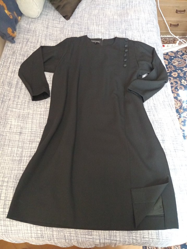 Abiye Elbise Siyah Kaliteli Yun Jorjet kumas iki kol arasi 55 cm basen 57cm ,boy 108 cm Astarli uzun kollu, yuvarlak yakalı Bol kesimi ve düğme detaylarıyla minimalist stile uygun.