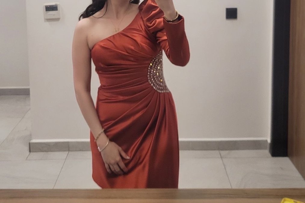 Asimetrik kesim tek omuz abiye elbise. Sadece birkaç saat giydim. 36-38 bedene uygundur.