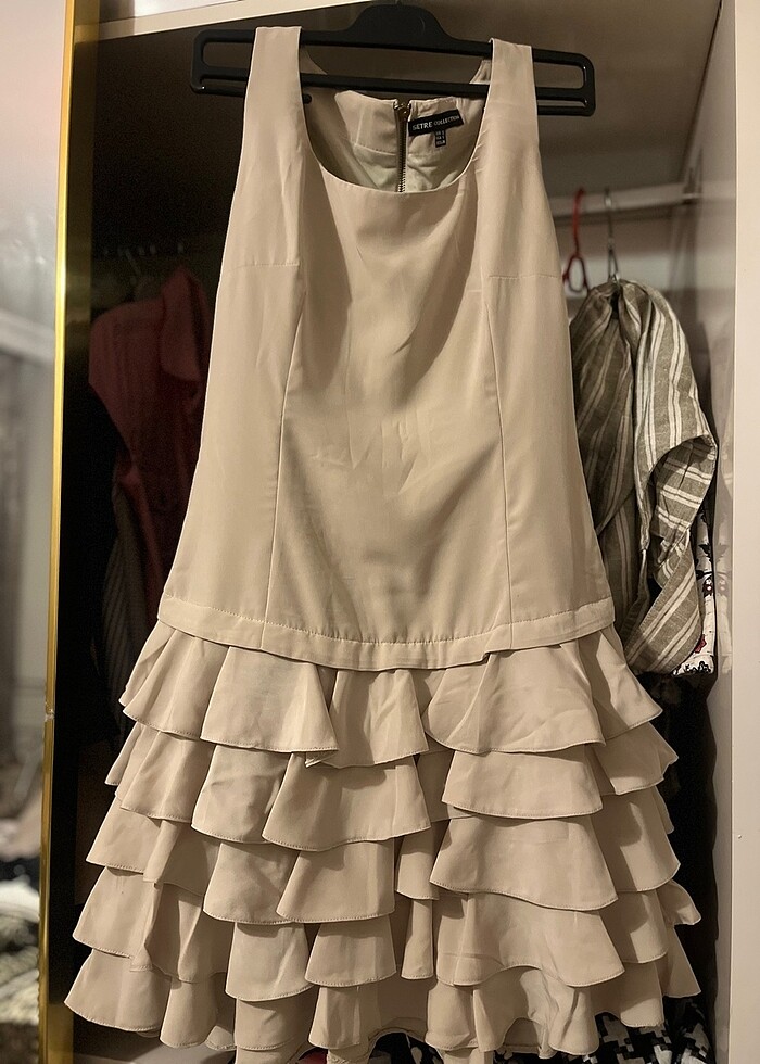 Abiye altı fırfırlı abiye elbise krem renkte 60 kg kadar olur 1 kez giyildi