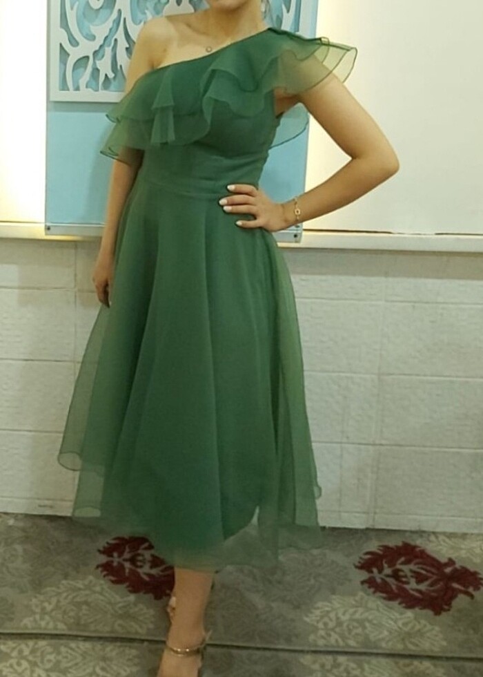 36 beden abiye yağ yeşili elbise