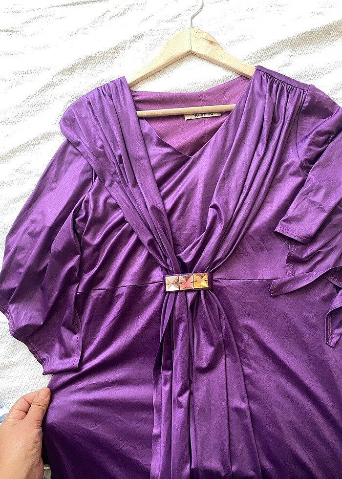 Abiye elbise xl mor renk parlak kumaş likralı çok hoş bir elbise 1 gün düğünde giyildi yeniden farksız geçensene 1800 tl ye alındı