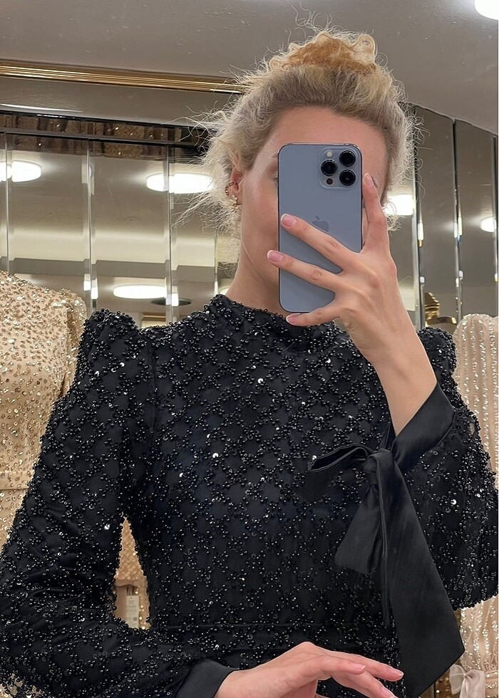 TAŞLI,KOL DETAYLI,KİLOŞ ABİYEMİZ 38-44 aralığında bedenler mevcuttur.