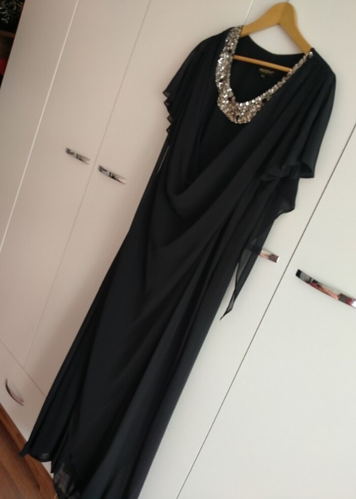 Sade ve şık bir elbisedir bir kez düğünde giyildi hiçbir kusuru deformasyonu yoktur son derece şık durur.. 46-48 bedene olur