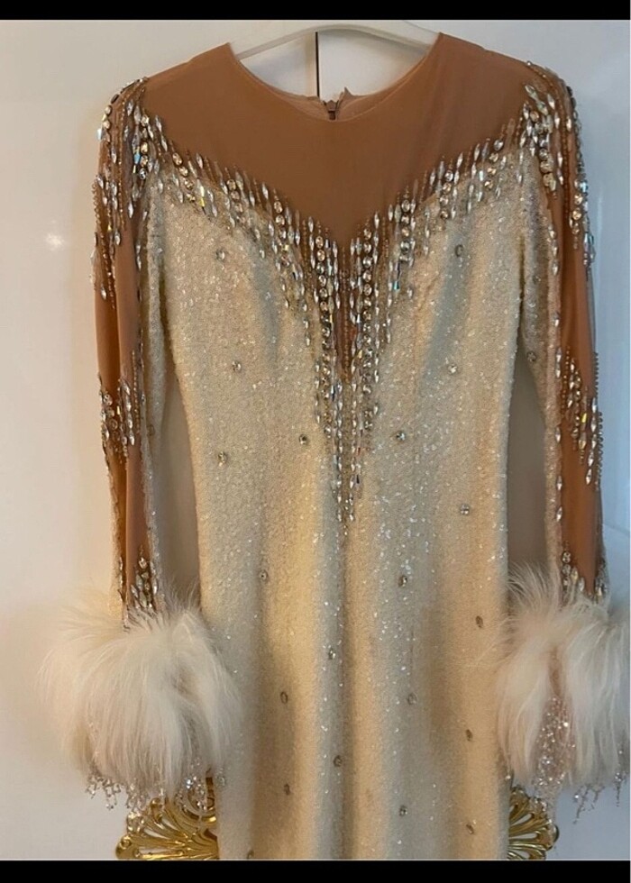 Yeni gibi Seda sayanın elbisesi M/38 Pudra Pudra ve krem rengi özel tasarim elbisedir bikez giyildi üstünde çok tas vardir taglarda dükülen var ne kadari bilmiyorum dükülen çok çok tas oldugu için fark edilmiyor iadem yoktur