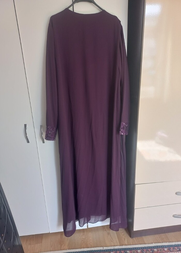 Bir kere giyildi. Mürdüm rengidir. 50 bedendir