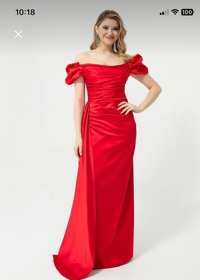 Ürünü bir kez kına gecemde giyindim bir kaç saat giyinildi ,saten kırmızı arkadan hafif kuyruk kısmı var çok güzel ve asil duran bir elbise