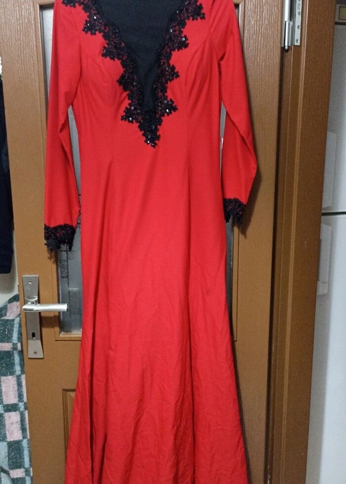 Kırmızı renk kolları işlemeli bedeni 2 numaradır.