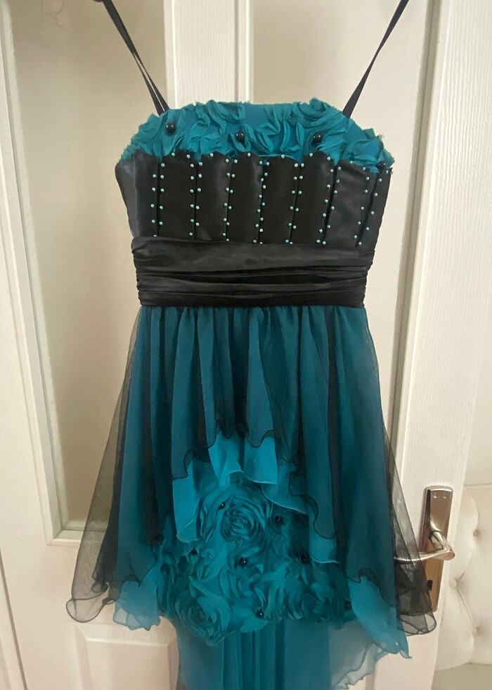 36-38 bedene uyumludur. Mavi siyah renkli, kuyruklu, önü kısa arkası uzun model abiyedir. Düğünde giymek için almıştım dileyen mezuniyetinde de kullanabilir. Gül detaylı boncuklu ve tüllüdür. Fermuarı tutukluk yapıyor zor açılıyor gerekirse tadilat yaptırılabilir onun dışında herhangi bir yerinde bir kusur yoktur.