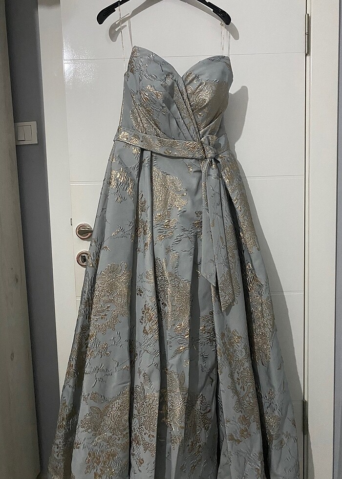 1 kez giyildi. Abiye ya da nişanlık olarak da kullanılabilir. Yırtmacı mevcut talebe göre kapatılabilir. 13000 TL ye alındı. Teklif yapılabilir.