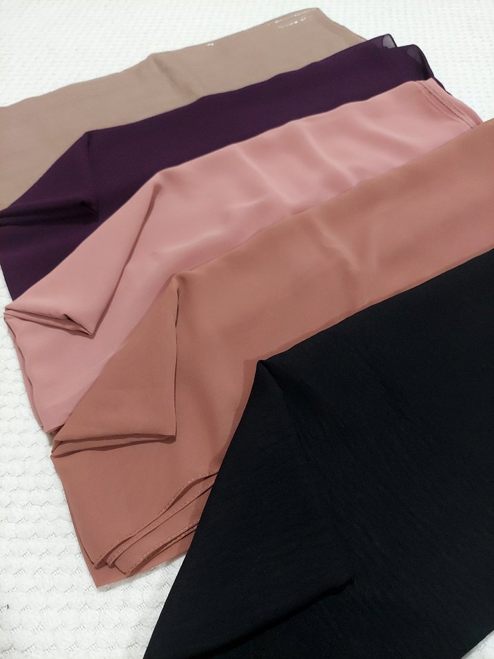 Kadınlar için drapeli tasarıma sahip, sentetik kumaştan yapılmış koyu kahverengi tonlarında, çağdaş ve minimal stil sunan şal. 4 adet 3 tanesi şifon bir tanesi simli , hepsi temiz