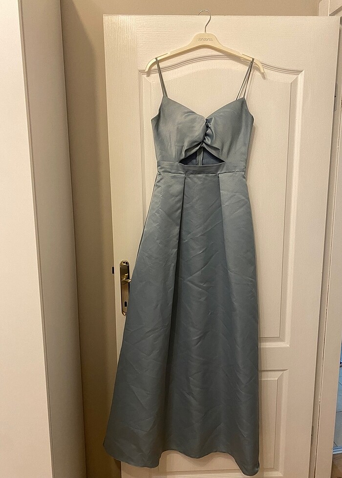 Saten elbise . Bana uzun ve bol geldiği için koyuyorum . Duruşu üzerimde yok . 36 beden