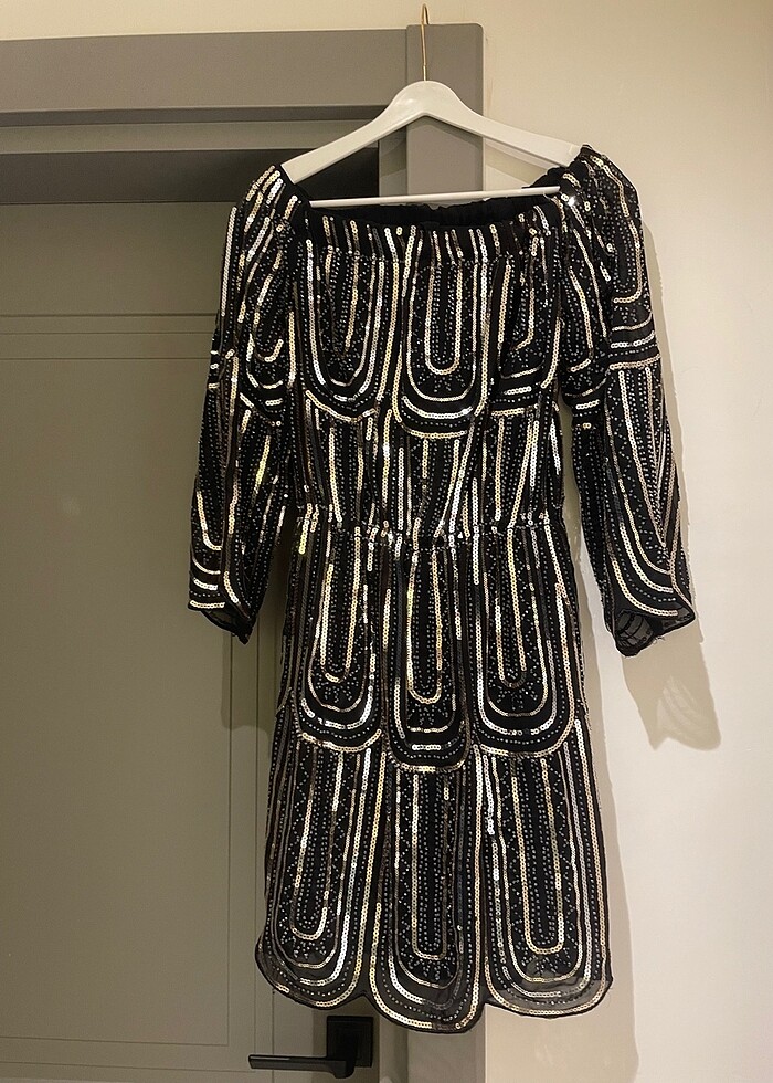 Ünlü bir markanın işlemeli omuz kısmı açık elbise etiketini kestiğim için markayı bilemiyorum
