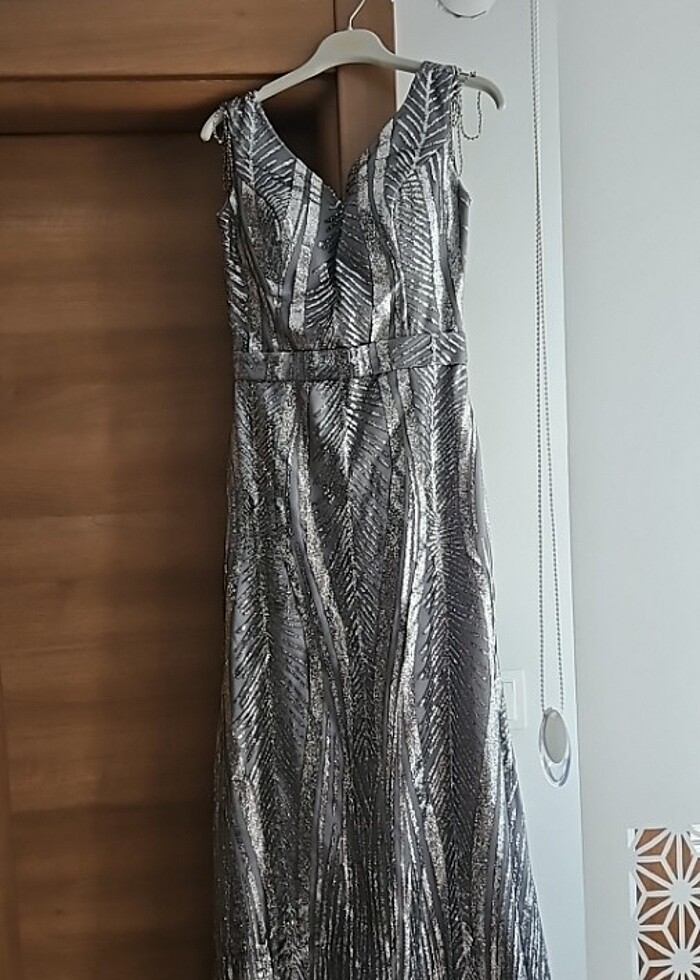Gri üstü simli işleme abiye