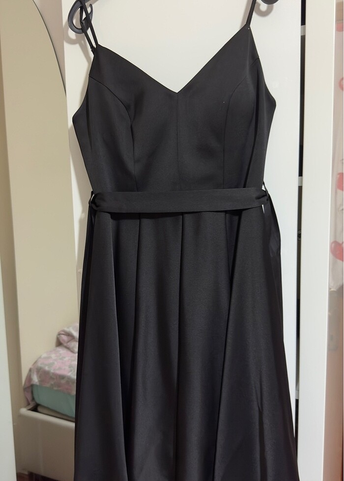 Siyah kısa abiye 38-40 beden uygundur 1.63 boyundayım dizimin üstünde oluyor çok mini değildir gayet güzel şık sade bir abiye kuşağı var 1 kez arkadaşımın düğününde tercih ettim deformesi yoktur fiyatta yardımcı olunur