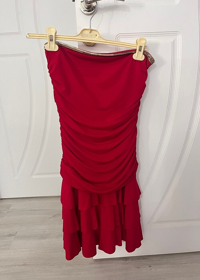 Straplez mini elbise 34 beden mezuniyete uygun olabilir