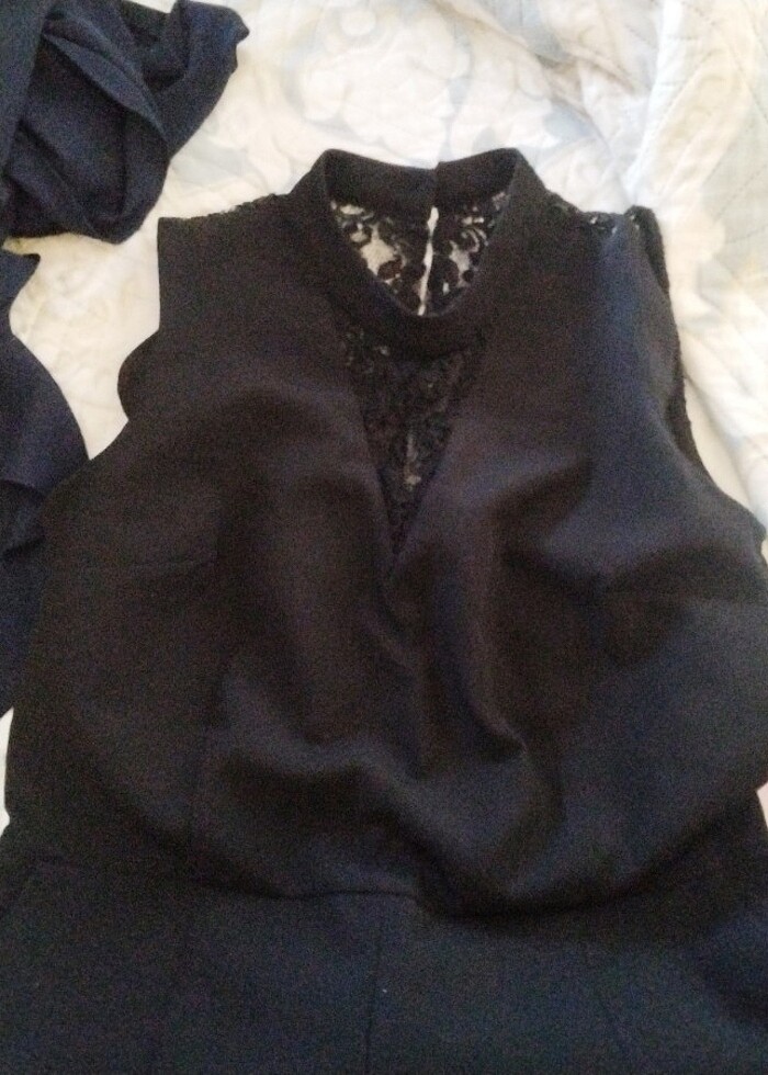 Boyun kısmında dantel detaylı,sıfır kol, cepli, yazlık , arka fermuarlı ve tekli boyundan düğmeli hafif sırt dekolteli abiye tulum