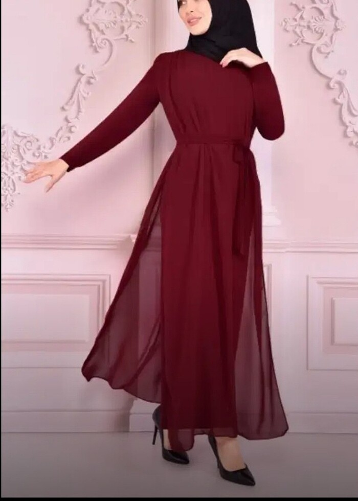 Abiye Tulum Elbise Bordo Renk 38 Beden Pelerinli Tül Detaylı