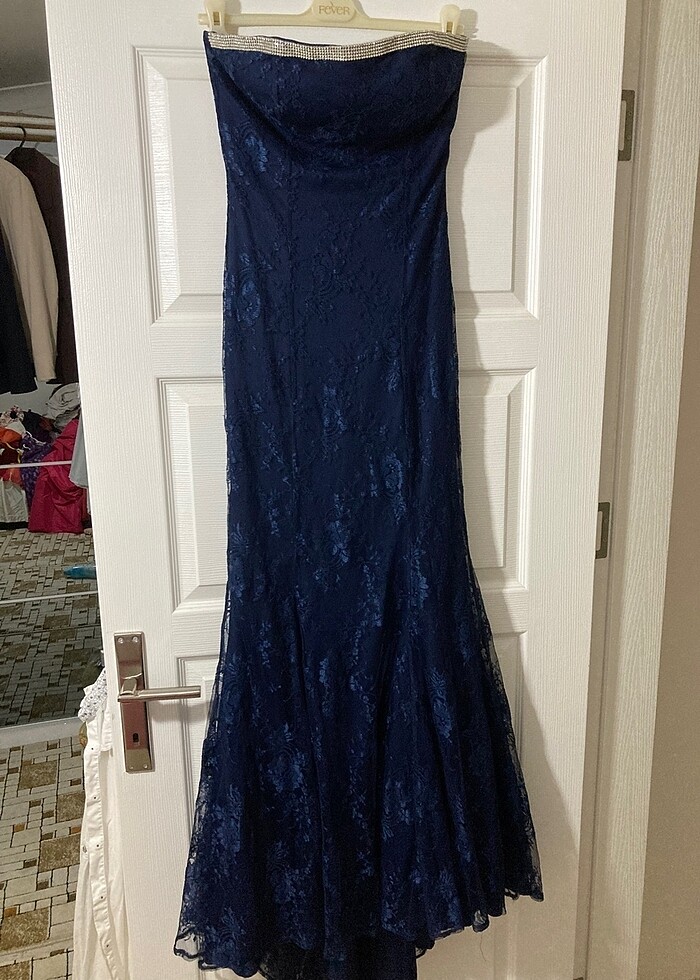 Bir kere giyildi sadece Komple güpür straplez öndeki taşlar sapasağlam hiçbir kusur yoktur kendinden sütyenli balık bir elbise boyu 140 kuyruk kısmı 15 cm xs / s çok rahat olur