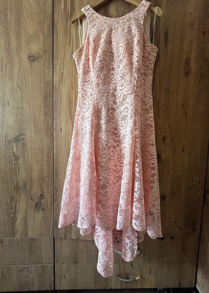 Toz pembe dantelli astarlı gece/mezuniyet elbisesi