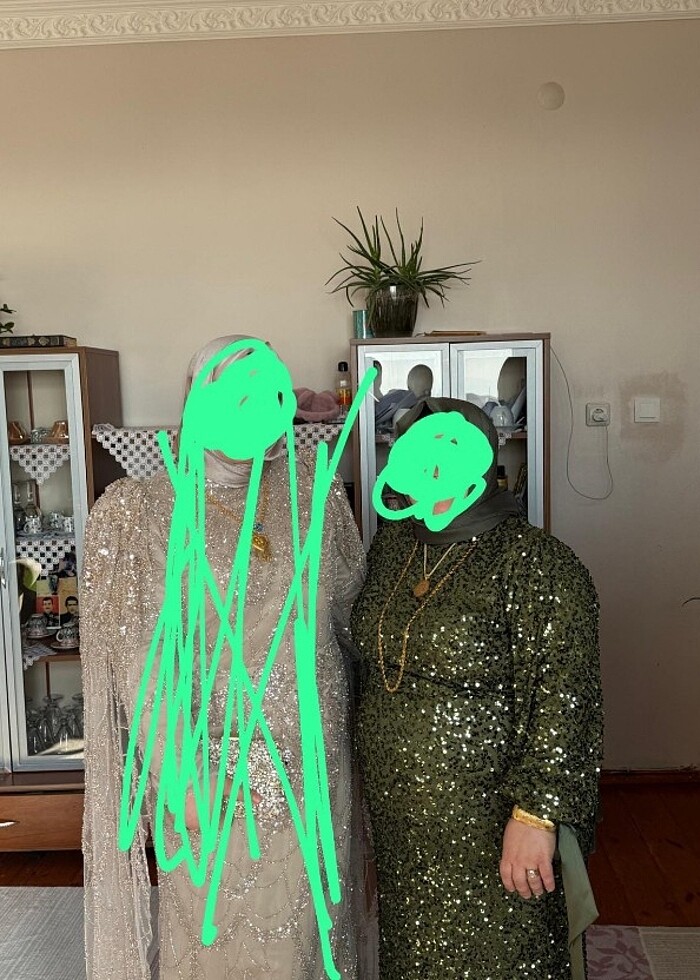 Yeşil abiye bir defa giyildi nikahta şali hediye omuz çizgisinden aşağıya doğru 134 cm