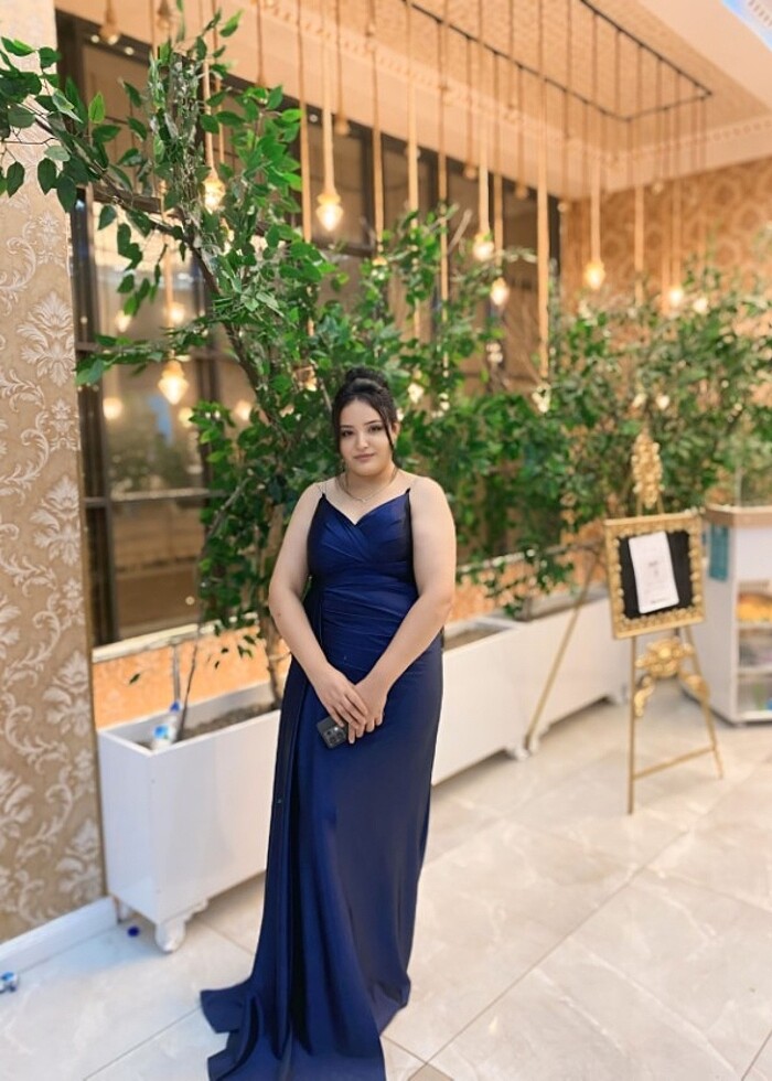 Lacivert abiye 3 4 saat giyildi yandan yırtmacı vardır yan kısmı kuyruklu