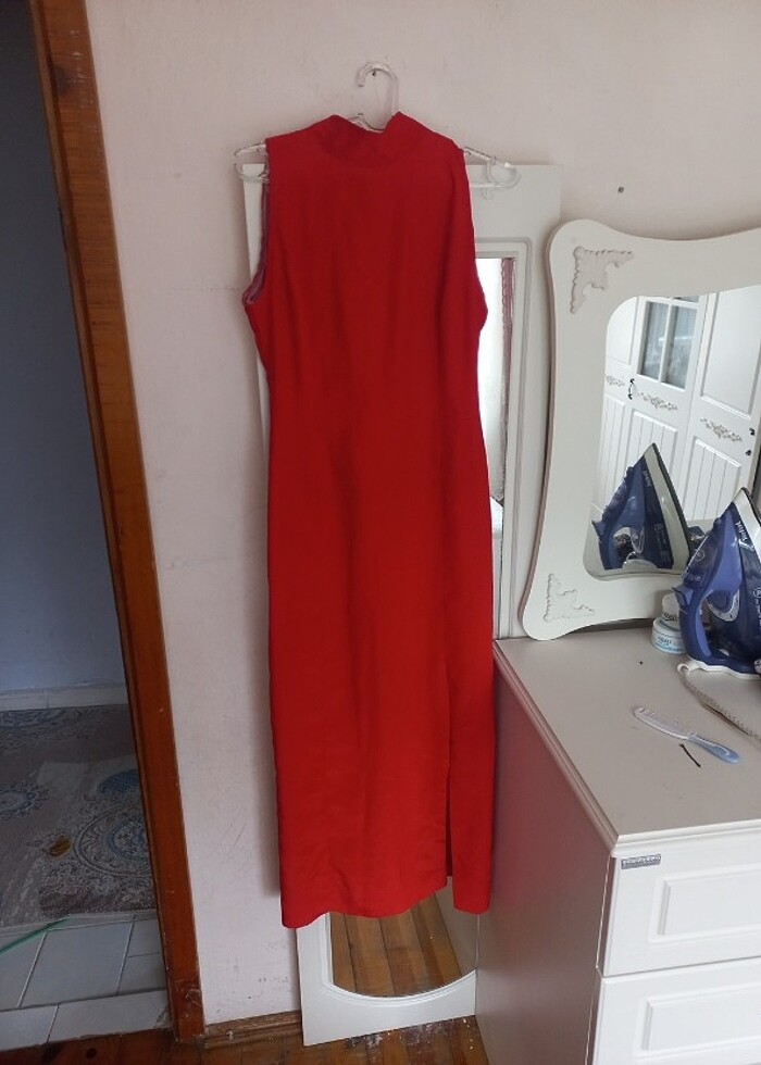 Uzun kırmızı kalem abiye derin yırtmaçlı astarli