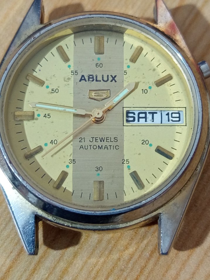 Parlak altın kaplama vintage erkek saati, otomatik mekanizma ve 21 mücevher taşlıdır. Gün ve tarih göstergesi bulunur. ABLUX markalıdır. ⌚Resimde gördüğünüz ürün. orijinaldir. çalışır durumda. takvim fonksiyonu da çalışır durumdadır. lütfen sadece ürünü anlayan bilen kişi alsın.